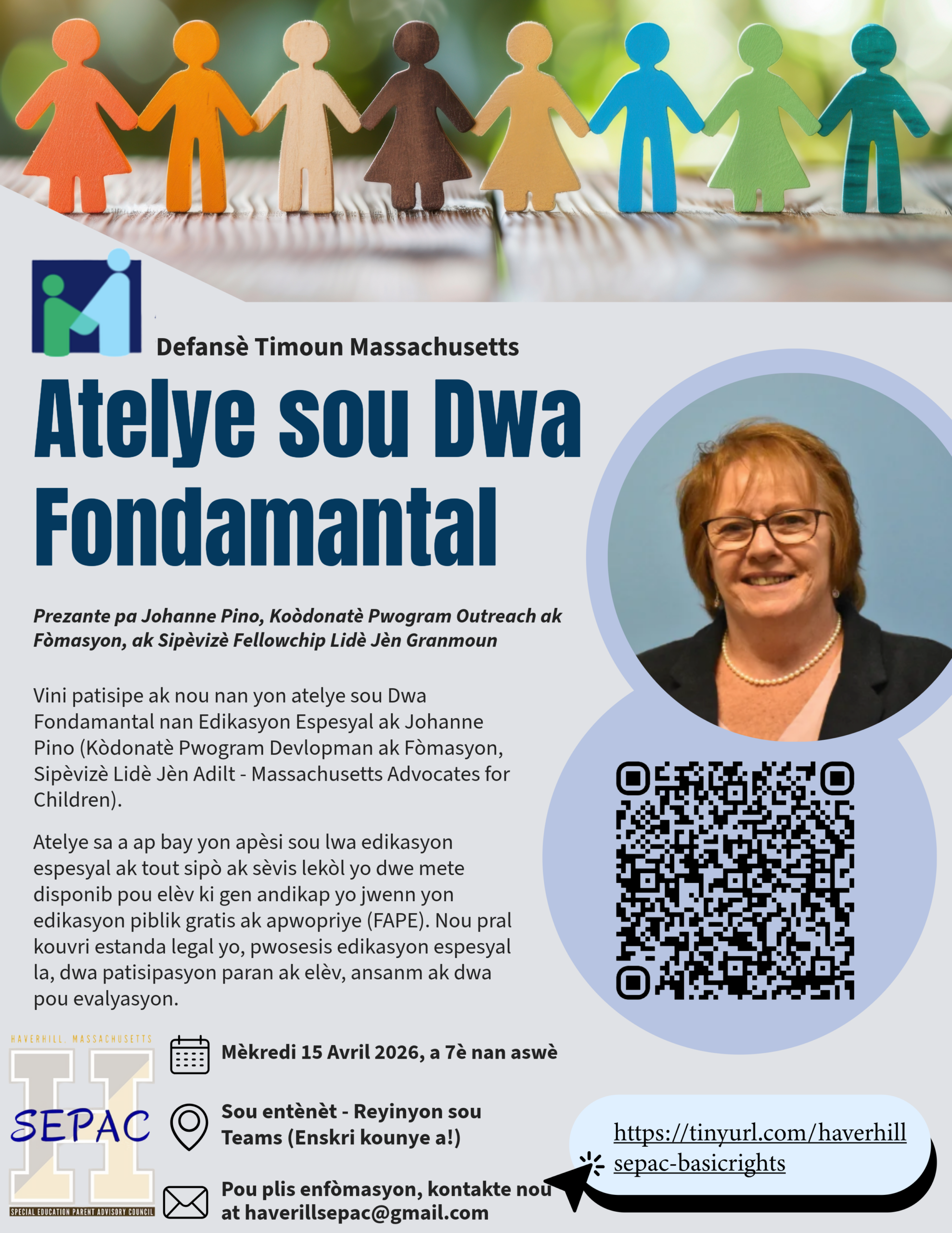 This informative session, led by Johanne Pino, will provide an overview of special education law, including your child’s rights, available supports and services, and how to ensure students receive a Free and Appropriate Public Education (FAPE).